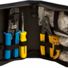 The EXO Deluxe Termination & Test Kit is the perfect one stop cable preparation, termination and test kit. This kit includes all the termination, preparation and test tools needed to properly terminate EZ-RJ45, ezEX44 and ezEX™48 connectors. With this kit, you will be able to terminate various cable sizes and conductor diameters with precision and test for proper termination. All tools and connectors come neatly organized in the Platinum Tools’s heavy-duty nylon Big Mouth Tool Bag.
