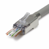 The EZ-RJ12/11 Connector simplifies twisted pair terminations by allowing the wires to be inserted through the connector and out the front. This allows the technician to easily verify the proper wiring order prior to termination. Use the EZ-RJPRO HD™ Crimp Tool (P/N USM-100054) or EXO Crimp Frame® with EZ-12/11 Die (USM-100061 & USM-100073C) for single cycle crimping and trimming of the excess wire. FCC compliant and UL rated. Made in the USA.